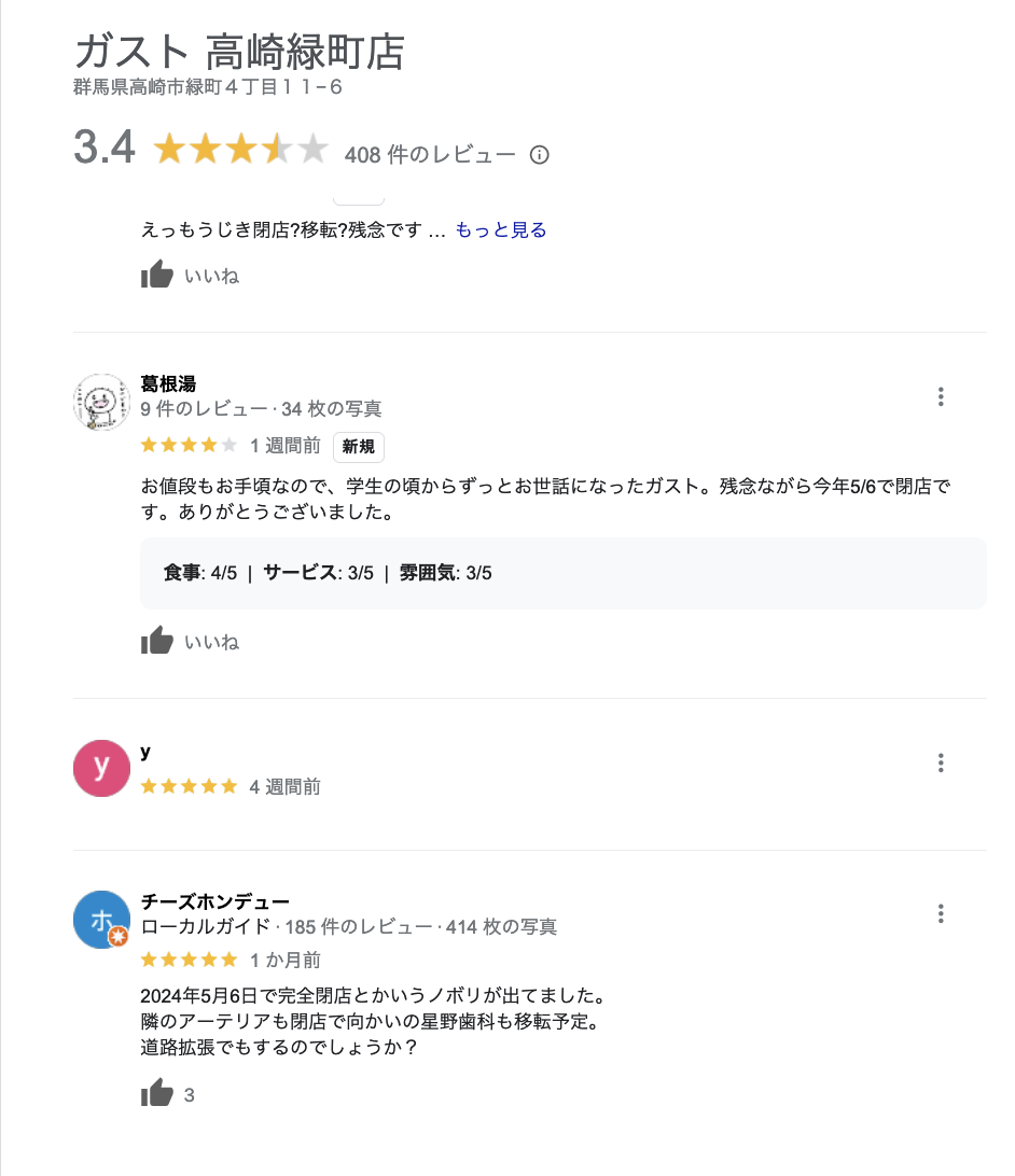 高崎市緑町にあった「ガスト 高崎緑町店」が閉店したみたいです。
